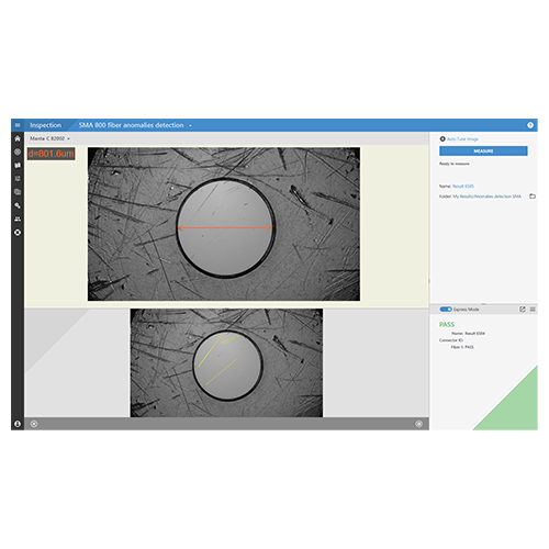 Dank seines weiten Sichtfelds (2,26 × 1,27 mm) ermöglicht der Manta C die gleichzeitige Prüfung der Faserendfläche und der umgebenden Ferrule. Mit einer optischen Auflösung von 1,8 µm und einer Kameraauflösung von 0,59 µm/Pixel liefert er hochpräzise, reproduzierbare Inspektionsergebnisse. Das System unterstützt eine Vielzahl gängiger Steckverbindertypen wie LC, SC, FC, SMA, AVIM sowie MIL-Spec-Termini und eignet sich auch für die Inspektion von PM-Fasern.