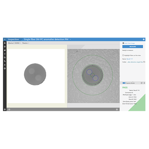 Der automatische Fokus sorgt per Knopfdruck für scharfe Bilder und beschleunigt den Prüfprozess erheblich. Ein Pass/Fail-Ergebnis für Einzelfaser-Steckverbinder liegt bereits nach 1 Sekunde vor, während MTP®/MPO-Steckverbinder in zwei schnellen Scans geprüft werden. Der Manta C ist automatisierungsfähig, lässt sich in robotergestützte Fertigungslinien integrieren und unterstützt normbasierte Prüfungen nach IEC- und Telcordia-Standards sowie kundenspezifische Kriterien. Eine Datenbankanbindung ermöglicht zudem die zentrale Auswertung und Nachverfolgbarkeit von Inspektionsergebnissen.